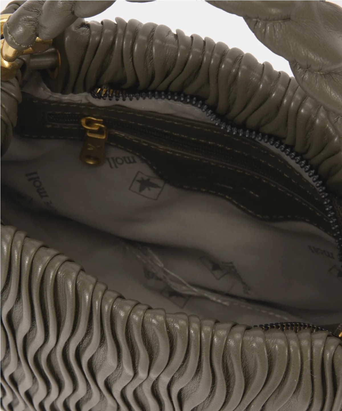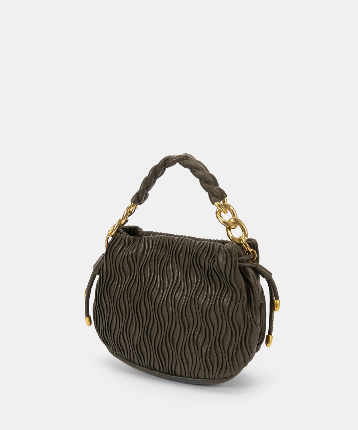BOLSO AMALIA PEPE MOLL 252261R. ? Diseño tipo cubo con efecto fruncido y textura plisada.