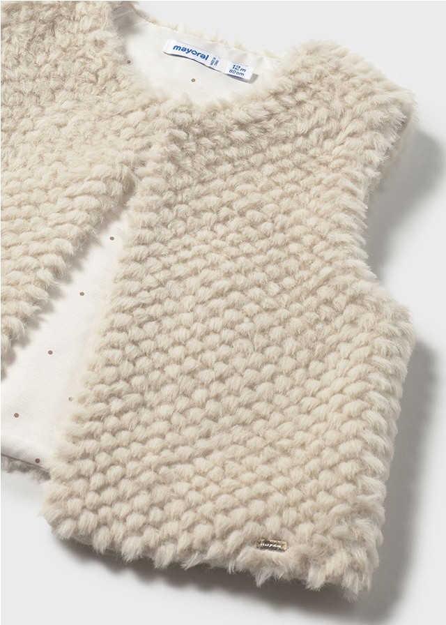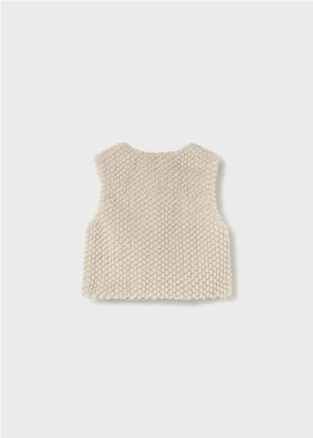 CHALECO PELO ESTRUCTURA 2359. Chaleco para bebé. Cierre con botón a presión oculto para una puesta ágil y rápida. Suave y gustoso tejido exterior de pelo. Suave forro interior de poliéster.