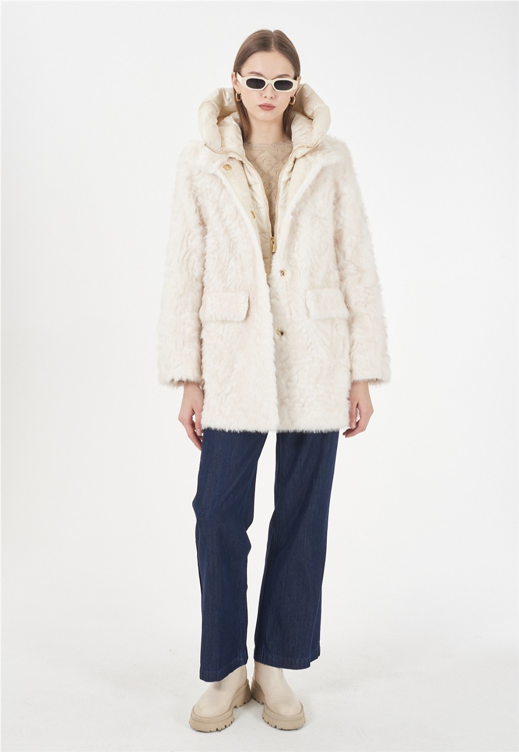 ABRIGO PELO CON CHALECO YES ZEE O060. Abrigo de pelo con chaleco y capucha acolchado desmontable.