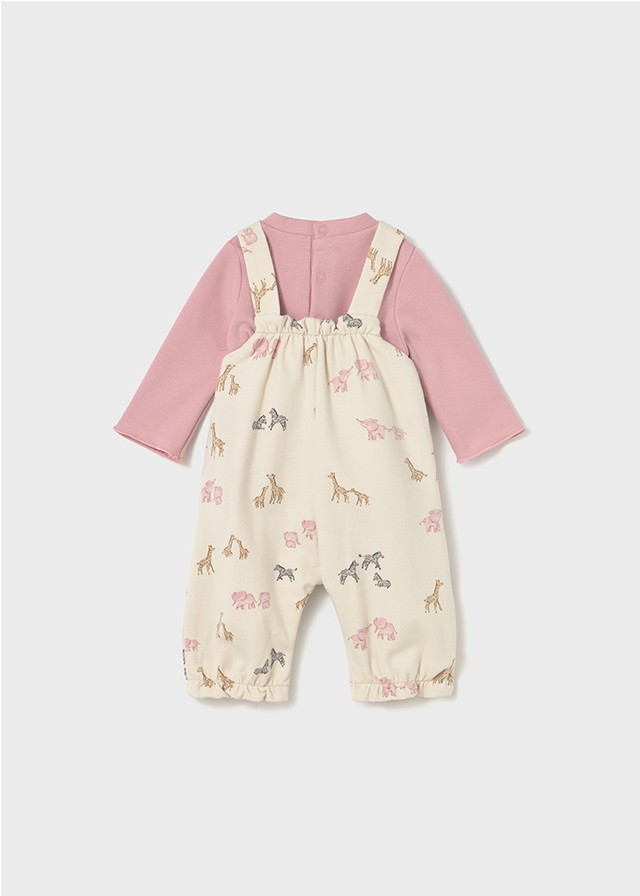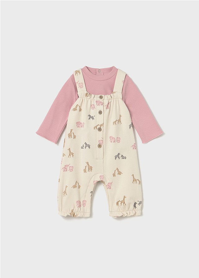 CONJUNTO PETO ESTAMPADO MAYORAL 2606. Camiseta de manga larga para recién nacida. Cuello redondo. Cierre con botones a presión en la parte posterior.