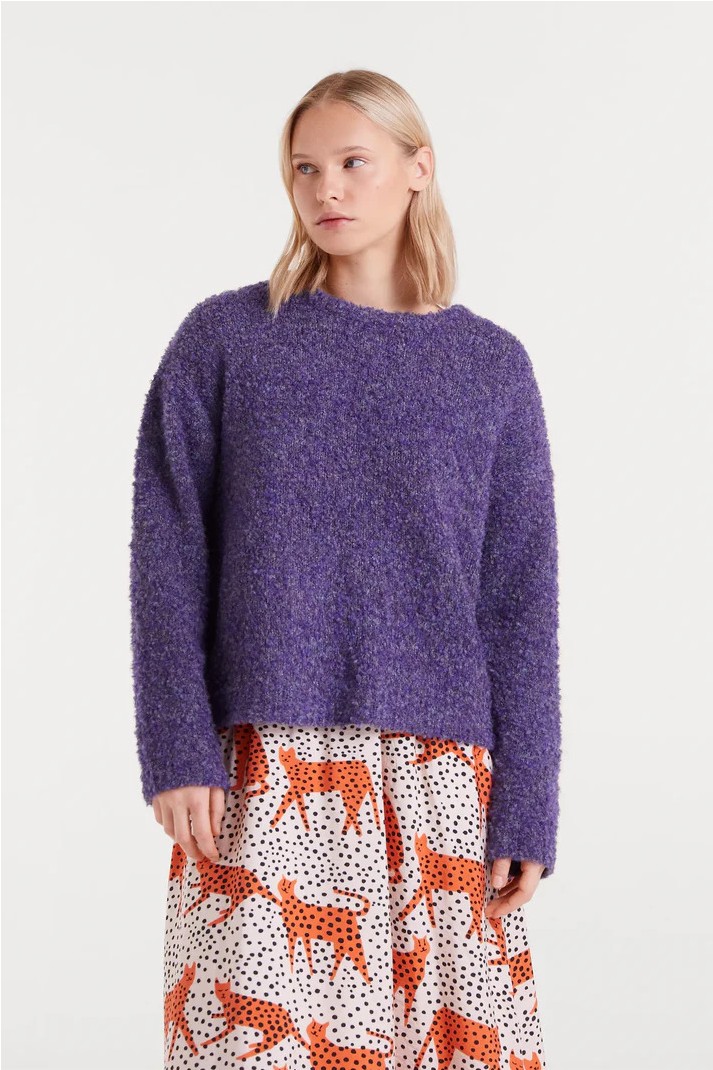 JERSEY COMPAÑIA FANTASTICA 54C/10373. Jersey punto con textura de color morado. Cuello barco y manga larga. Hombro ligeramente caído.