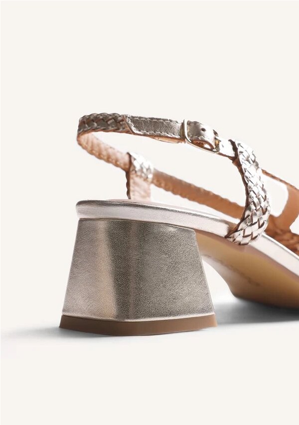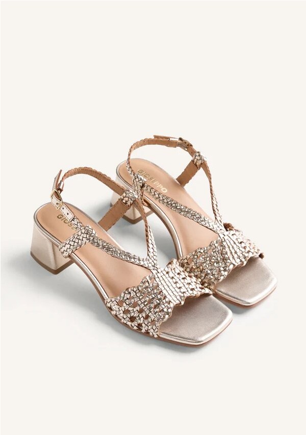 SANDALIAS BLISSFIELD GIOSEPPO 79234. Sandalias de piel trenzada a mano con acabado metalizado. Tacón tipo bloque. Cuentan con planta acolchada y cierres ajustables en el tobillo. Altura tacón: 4,5 cm.