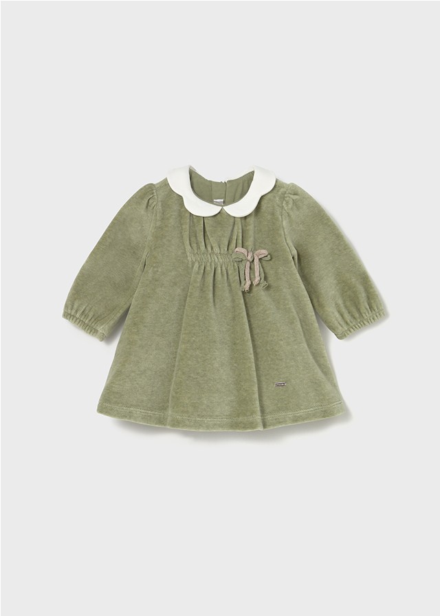 VESTIDO TUNDOSO MAYORAL 2805. Vestido de manga larga para recién nacida con puños elásticos. Cierre central trasero con cremallera oculta. Modelo con forro interior. Modelo con rizo.